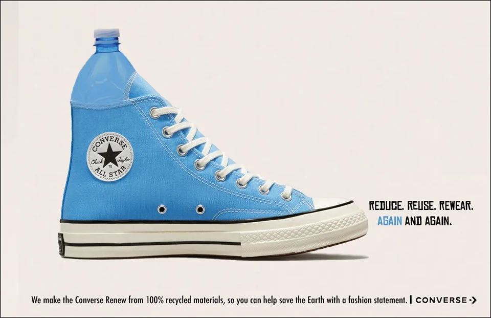 Big Idea: Made from 100% recycled materials, the Converse Renew will help customers make a statement about their values and commitment to sustainability with every step.