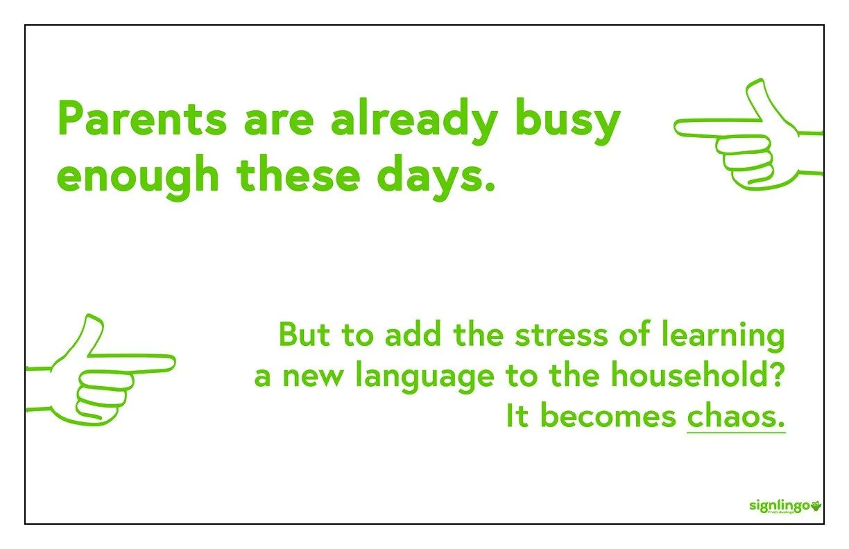 Solution: Give hearing parents around the world multiple resources to help them learn sign language within the Duolingo app.